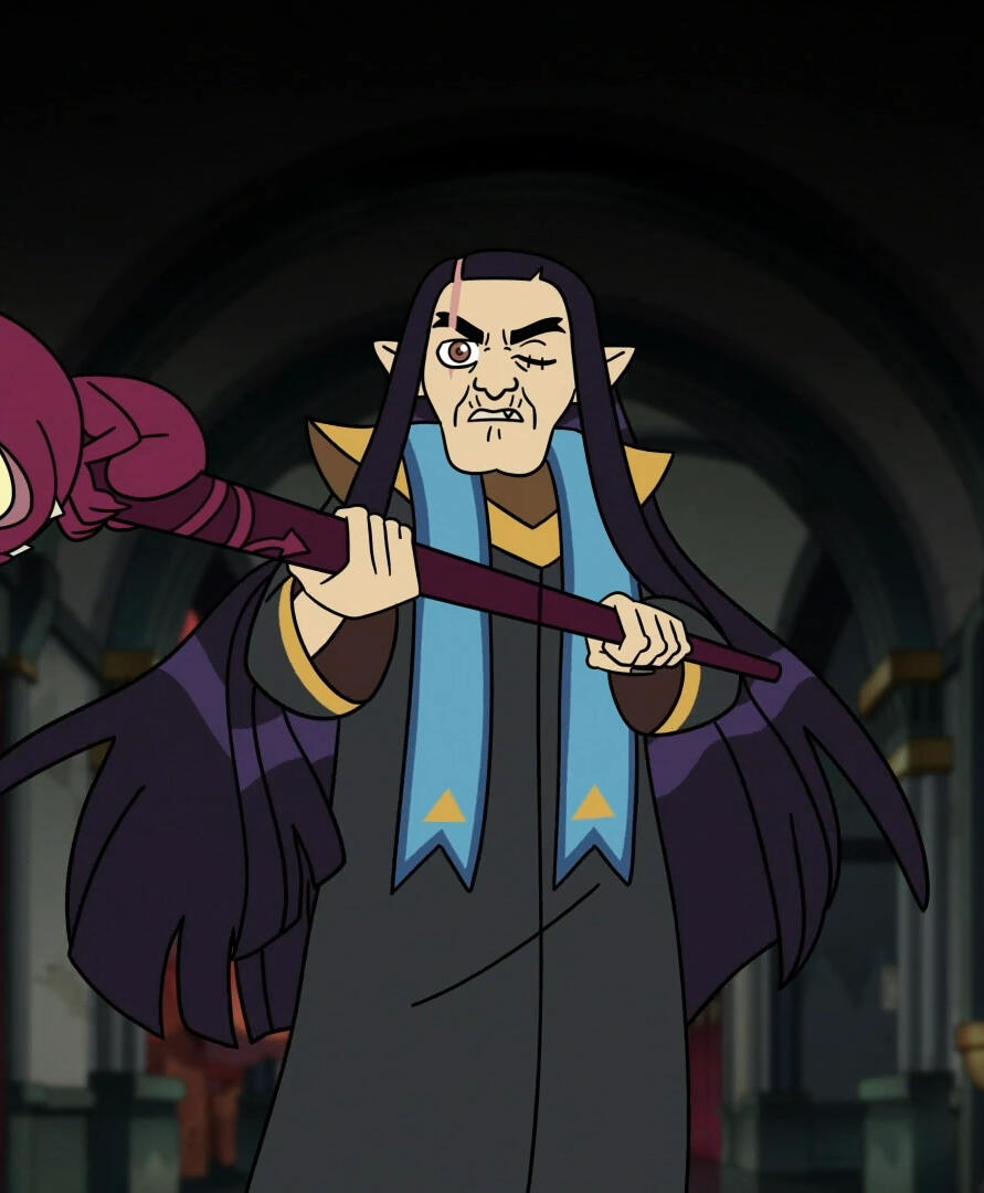 BIOGRAPHY:A former Abominations student of Hexside School of Magic and Demonics, he eventually joined the Abominations coven and led Hexside to war and victory against a rival school which was then destroyed so that Hexside could expand.He has since become principal of his alma mater and takes his job fairly seriously, caring deeply for all of his students, the staff, and their well-being, with their safety as his absolute top priority.While he isn’t fond of hijinks or tricks, especially when they affect the school, he does his best to make all his punishments unbiased and fair. He loves his Palisman deeply, and is never without Frewin, as he needs the Palisman to help him see due to his injuries.