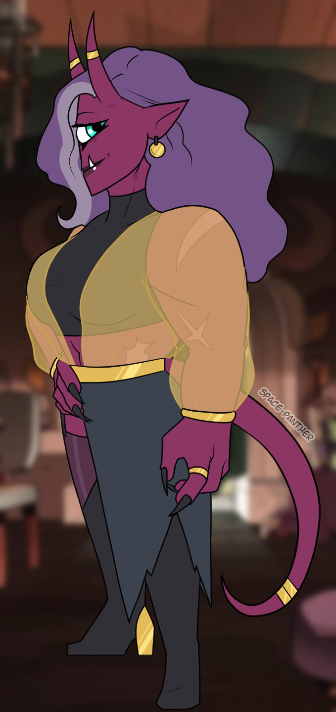 BIRTH NAME: Maryna RocchiNICKNAME: Mary, Ma, Mom, Mama, Ryna, BabeAGE: 45SPECIES: Oni DemonGENDER: Cis FemalePRONOUNS: She/HerORIENTATION: PansexualALIGNMENT: Chaotic GoodLANGUAGES: EnglishHEIGHT: 8'3"EYES: Cyan BlueHAIR: Faded lavender with grey streakPHYSICAL BUILD: Very beautiful....Very powerful....SCARS: One slash across her left shoulder, a cross on her left bicep, and an impact mark on her left side.NOTICEABLE FEATURES: Large, flashy gold jewelryMENTAL HEALTH: HeartyPHYSICAL HEALTH: HeartyFAMILY: GiiGii (Daughter)