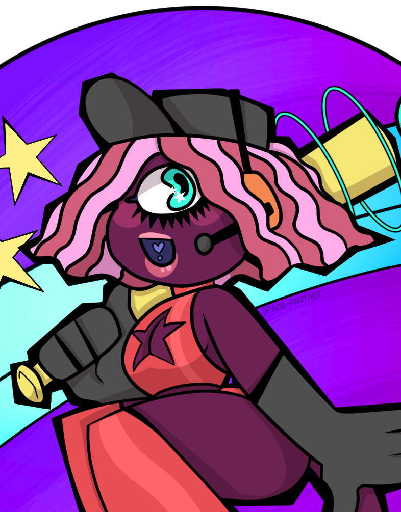 PRONOUNS: She/HerORIENTATION: PansexualALIGNMENT: Chaotic GoodLANGUAGES: Cat, WitchHEIGHT: 5'EYES: Pink pupils and yellow scleraHAIR: desaturated seafoamPHYSICAL BUILD: Round and mom shapedNOTICEABLE FEATURES: Diamond nose markMENTAL HEALTH: HeartyPHYSICAL HEALTH: HeartyFAMILY: Seven grown children